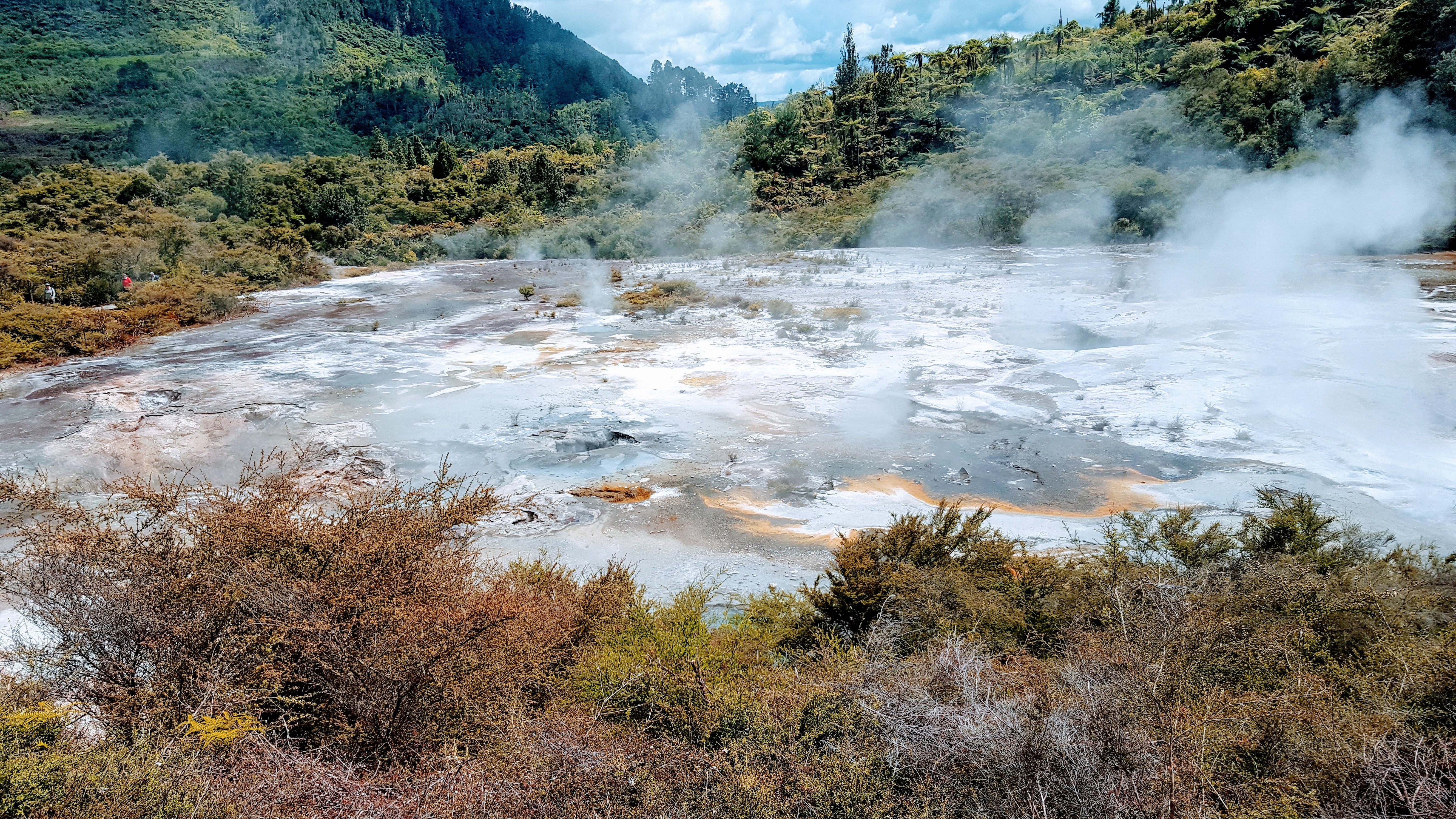 In geothermische gebieden zoals IJsland en Nieuw-Zeeland (foto) wordt al jarenlang gebruik gemaakt van warme bronnen voor verwarming en om te baden. De aarde is een onuitputtelijke bron van warmte, als er maar tevens water beschikbaar is.