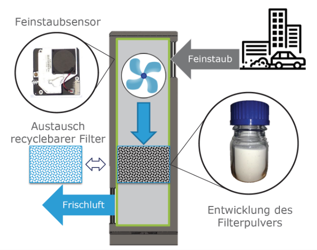 Helaas gaat het vele jaren duren om fijnstof te elimineren. Daarom zuigt dit apparaat buitenlucht in een filtersysteem, verzamelt fijnstof en nano-deeltjes en levert het schone lucht af. Het apparaat maakt geen gebruik van fossiele bronnen en is beschikbaar voor een lage prijs[8].