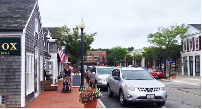 De bovenste foto toont Mashpee Commons (Massachusetts), een nieuw kleinschalig centrum in een suburb en de onderste foto toont Storrs (Connecticut), een nieuw winkelcentrum in dichter bebouwd gebied. Beide centra zijn in de plaats gekomen van afgebroken malls.