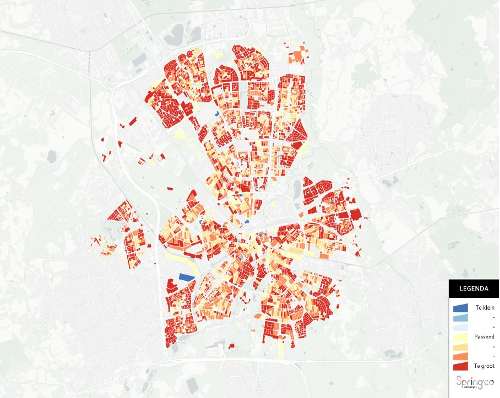 Binnen Nederland komen grote verschillen voor in het benuttingspercentage van de wooncapaciteit. Vooral in Amsterdam en in iets mindere mate de andere grote steden, is dit percentage hoog. Maar ook binnen de steden zijn er grote verschillen. In Rotterdam woont 35% van de inwoners te ruim, in Eindhoven is dat 63%. Dat blijkt overduidelijk je naar de plattegrond van Eindhoven kijkt.